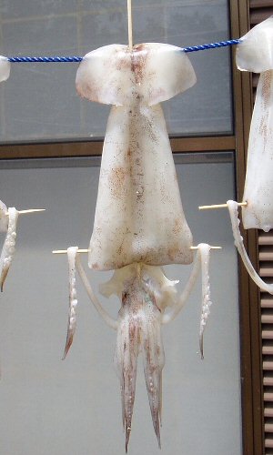 元来は、イカを釣って速攻で船上で開いて干して作る。