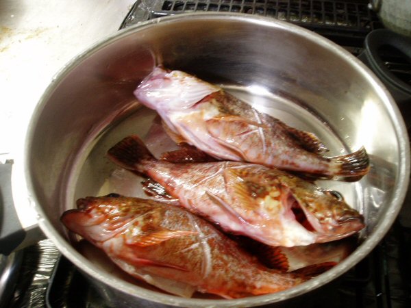 刺身でも食べれる釣りたての魚を軽く蒸焼きにする。