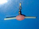 (発光玉の穴から爪楊枝を入れハリス止めの環の向きを調整しておく)