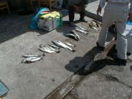 釣り客が釣った魚と船頭さんが釣った魚をひとまとめにして、すべてを公平に分けます。