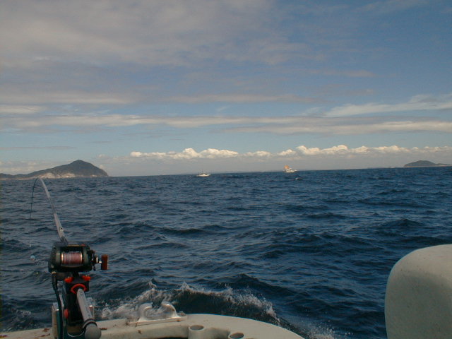 予報のウネリが300pの時の実際の外海(太平洋)の海上の様子です。 運良く・・と言うか、大型の台風が接近している時に釣りに出ました。 @はウネリが無い時。 ナギの状態となんら変わりなし。 Aウネリが来ると・・・。 だんだんウネリがやって来ます。 この後、船の後部のマスト部(スパンカーの先っちょ)も波の下に消えました。 早い話、波に消されて船はまったく見えなくなりました。 3mのウネリと言うとこんな物でしょう。 ちなみに乗っている船は、フゥワァ〜っと浮き上がり、フゥワァ〜っと沈みます。 慣れると揺りかごみたいに気持ちがイイです。 |
