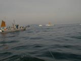 予報波高が150pの時の実際の内海(伊勢湾)の海上の様子です。 残念ながら、その状態で私には写真を取る余裕は有りません。 もし、マトモな状態でいられれば取ってきます。 目視観測では、常時100p程度の波高が有ります。 150p前後の波もけっこう来ますし、当然それ以上大きな波も。 船は左右前後に大きく揺れ(ローリング、ピッチング) 物につかまっていないと立ってられません。 この波高では私はいつも船酔いしています。 当然、逆噴射を何度も経験してます。 |