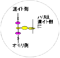 道糸側にハリが向くようにして下さい。